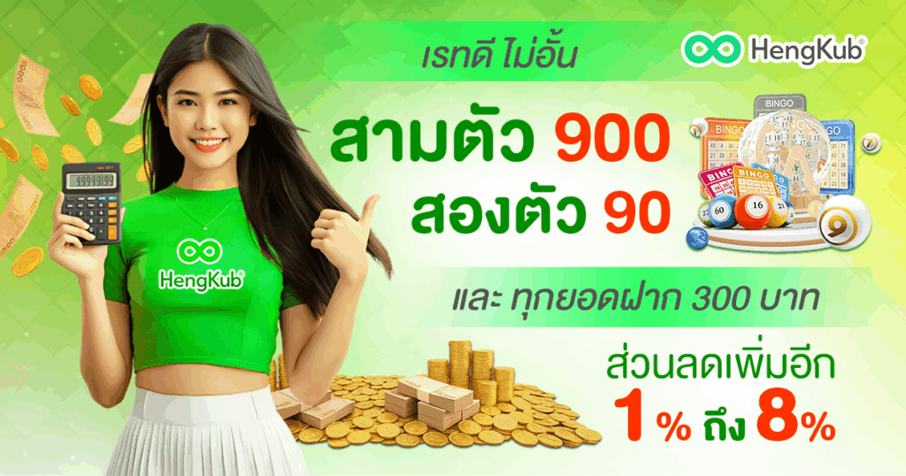 Hengkub โดดเด่นด้วยอัตราการจ่ายที่สูงที่สุดในไทย ทั้ง 2 ตัว 3 ตัว และหวยชุด เล่นได้ทุกเลข ไม่มีอั้น ไม่มีลดราคา